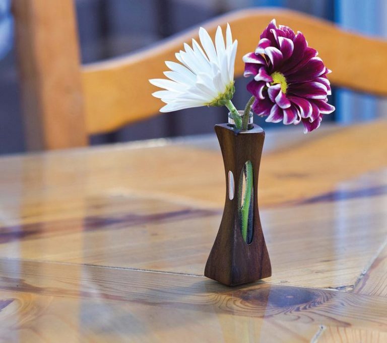 This simple vase is easy to make and will impress your friends. You can also dip into your offcut bin and use up some of those exotics you have been cherishing.