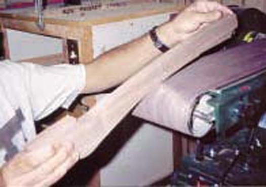 Sand the parts. The tight curves on the legs and the crossbars are best sanded using drum sanders in a drill press but they can also be hand sanded. Sand the tops smooth and even up the curved edges with a belt sander. The concave sides of the legs must be done using the end roller of a belt sander.