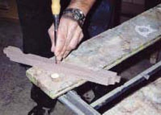 Trace the templates onto the stock and cut the shapes using a band saw or jig saw. A band saw greatly simplifies this project. Cut the tenons to the shapes on the templates. The tenons should be ½” wide. Turn each crossbar 90 degrees and cut the tenons to ½” thickness. The tenons should look like ½” cubes when done.