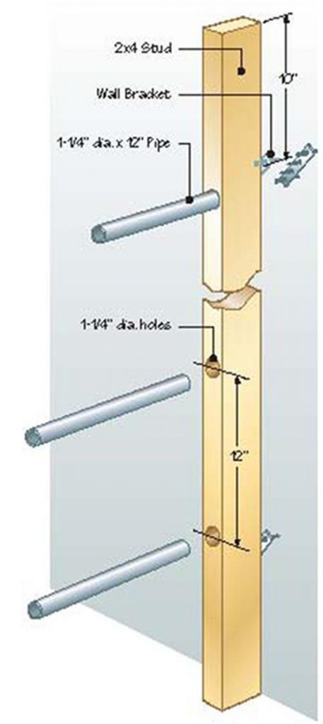 When properly mounted, these racks will hold an impressive pile of heavy hardwood or any material you choose. To build a lumber storage rack 12′ long and 8′ high with seven levels costs about $600.