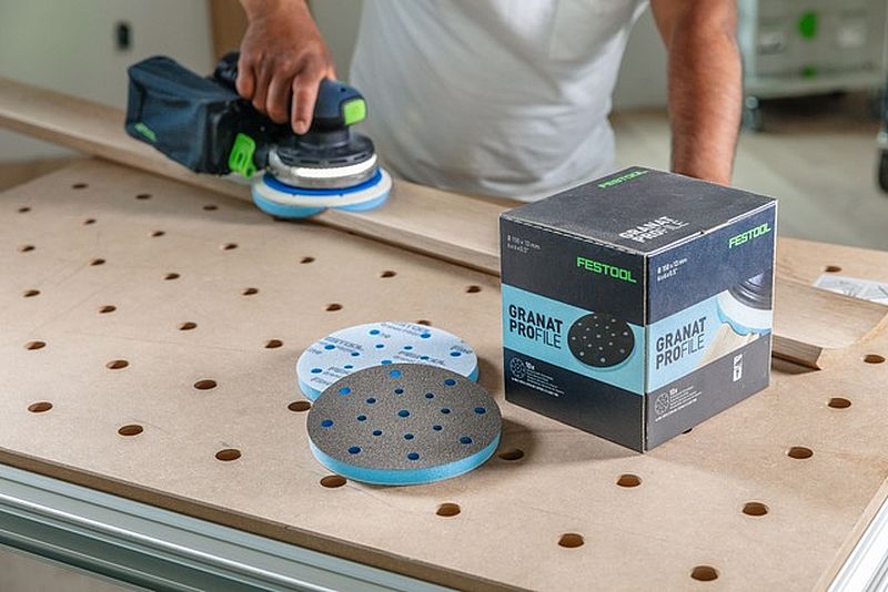 The backing of the abrasive also matters. Flexible backings work well on curves, while stiffer ones help keep flat surfaces true. For bare wood, Festool’s RUBIN line is specifically engineered to reduce loading and deliver a smooth, uniform surface. For a wider range of materials — from bare wood to finished or painted surfaces — GRANAT abrasives are a reliable, long-lasting choice. They’re available as sheets, mesh, or even foam-backed pads under the GRANAT PROfile name, designed for contoured or profiled work.
