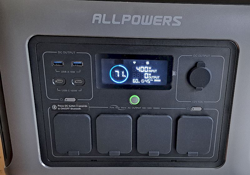 Another standout feature is its fast recharge time. Based on my experience, you can expect a 0–80% charge in under an hour from a wall outlet, and a full charge in roughly 1.5 to 2 hours. The built-in display provides clear, real-time information about input/output wattage, battery level, and remaining runtime, so there’s no guesswork. It also includes Wi-Fi and Bluetooth connectivity, letting you monitor and control the unit through an app — something I’ve found surprisingly useful for checking its status from across the shop. Yet another cool feature is that the R1500 includes two wireless charger pads (30W max each) on the top surface for charging compatible phones, earbuds or other Qi-enabled devices.